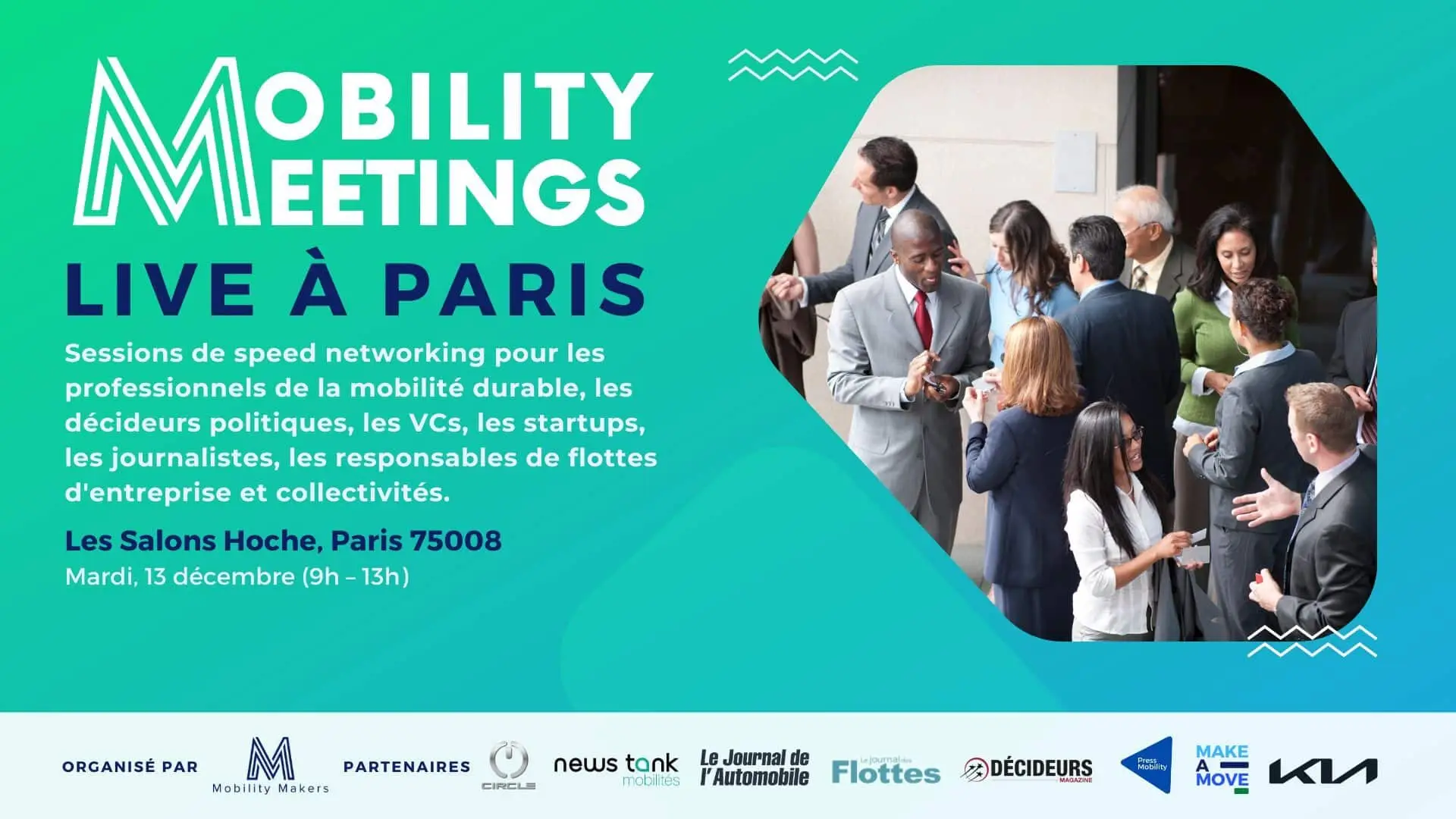 «Mobility Meetings Live Paris» se déroulera aux Salons Hoche (75008), le mardi 13 décembre de 9 h à 13 h.